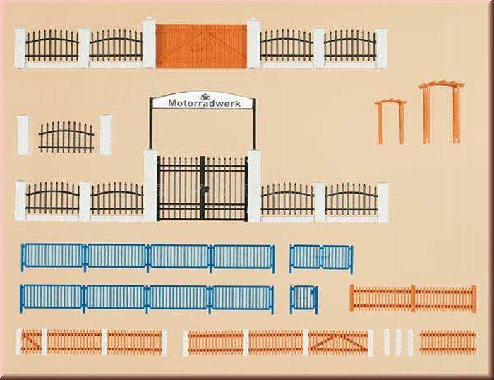 Набор заборов с воротами. Модель подходит для масштабов H0 и TT.