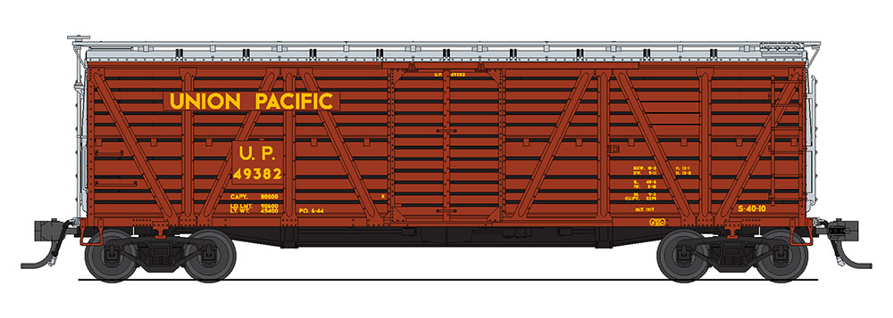 Вагон для перевозки животных тип PRR K7. Установлен декодер со звуками крупного рогатого скота. Принадлежность Union Pacific