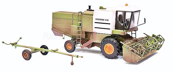 1982 Fortschritt E 514 Farm Combine - Assembled -- With Harvesting Head Trailer (окрашен под естественно загрязненный от эксплуатации, запыленный вагон)