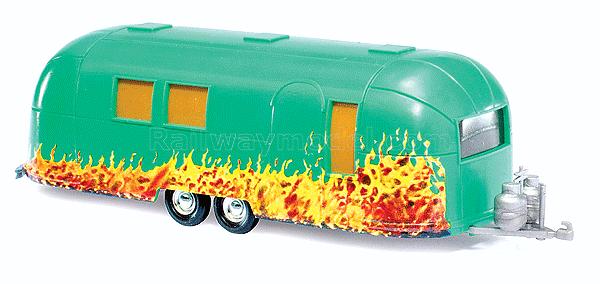 Airstream Aluminum Camping Trailer -- Imbiss (1958 Snack Trailer Scheme, green, orange Flames)