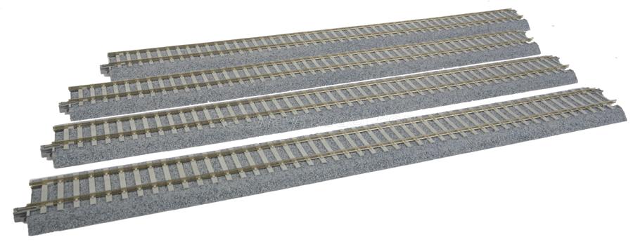 Рельсы KATO Unitrack. Прямая с балластной призмой с бетонными шпалами. Длинна 369мм, в упаковке - 4шт.