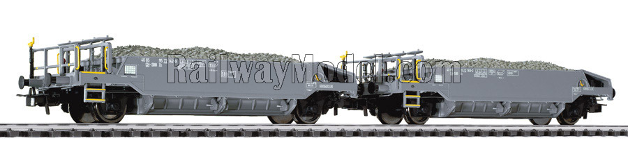 Сцеп из двух платформ для сброса гравия c грузом. Принадлежность SBB. Эпоха VI