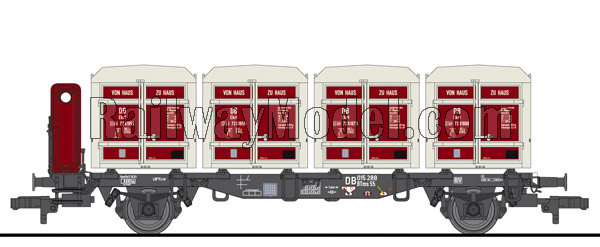 Платформа для перевозки контейнеров, тип BT55 m, с четыремя контейнерами Ekrt 231. Принадлежность DB, Германия. Эпоха III