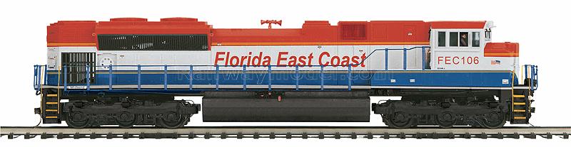 Тепловоз EMD SD70M-2 аналоговая версия. Имеется разъем под установку стандартного DCC декодера. Принадлежность Florida East Coast #106. В кабине - фигурки машиниста и помощника, свет в прожекторах и номерных таблицах, освещение в кабине. Минимально рекомендуемый радиус 18" (457 мм). Может использоваться как на рельсах высотой 2.1 так и 2.5 мм.