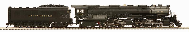 Паровоз 4-6-6-4 Challenger. Установлен дымогенератор, а также универсальный цифровой декодер со звуком Proto-Sound 3 с оригинальной системой синхронизации дыма и звука Puffing ProtoSmoke System, работающий как с аналогом, так и с цифрой. Фигурки машиниста и кочегара. Свет в прожекторе и фонарях, а также в кабине. Модель выполнена из металла. В комплекте прилагается жидкость для дымогенератора. Угольный тендер. Принадлежность Clinchfield #674 (чёрный вариант окраски)