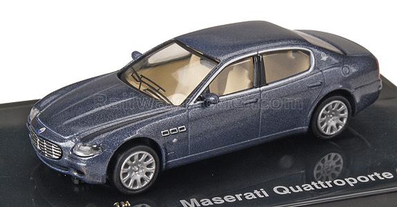 Maserati Quattroporte, 2003г., серый металлик. Модель великолепного качества с интерьером, хромовыми деталями и отлично выполненными мелкими надписями и т.п. Поставляется в прозрачном пластиковом боксе.