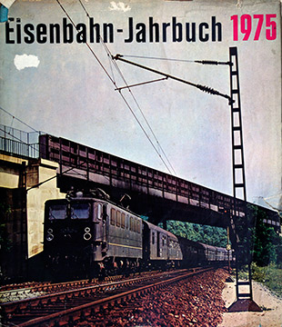 Комиссионная модель. Книга Eisenbahn-Jahrbuch 1975 (Железнодорожный ежегодник за 1975 год) 174 стр. Издание 1975 года. Формат А4. Твёрдая обложка. На немецком языке. Состояние: суперобложка надорвана, в остальном состояние хорошее.